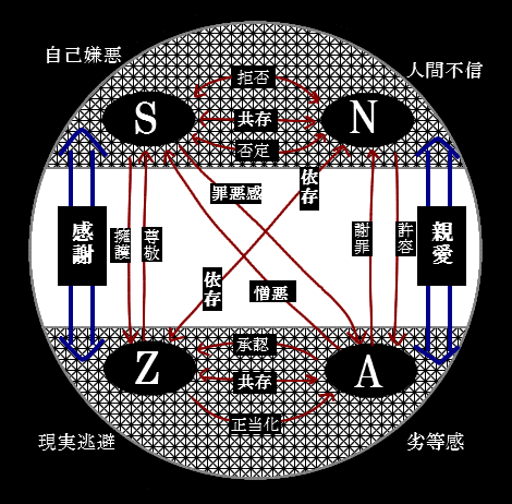 画像はネオン・ソウドとゼルローム・アゼロの二面性的相関図です